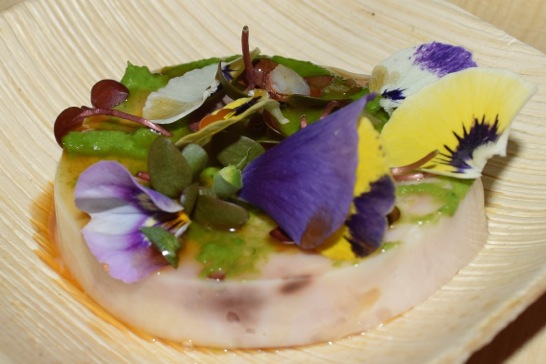 Not usually a lemon dessert fan, I found the light and airy dessert by chef Ron Mendoza (Aubergine) to be lovely and refreshing. His dish of Opalys Ganache, Meyer Lemon, Fennel, and Coriander was accompanied by a 2007 Chateau Guiraud 1er Grand Cru Classé en 1855, Sauternes and was a perfect way to end such a huge gastronomical celebration.