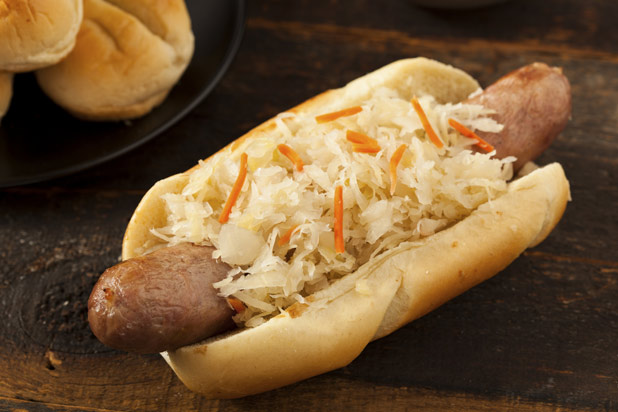 The hot dog / bratwurst was brought to the U.S. by German immigrants (known in Germany as brätwurst) — the original version is a lot chunkier and more finely spiced, and many argue it also uses considerably better quality meat. The result is a more flavorful sausage that's a lot more than just a fast food. Brätwurst is a big feature in German cooking and there are countless varieties, many of which are consumed solo (without the bun).