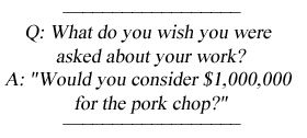 "Would you consider $1,000,000 for the pork chop?" The response to these pieces has been strong and most every question you can think of, aside from the million dollar one, gets asked.