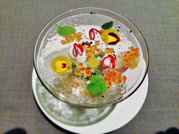 Crab and Ice at Grace in Chicago. This is a crab dish that has a sheet of sugar across the top that you break to combine all the components. It is one of the prettiest things I've ever eaten.