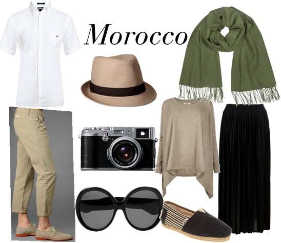- Ladies: Flats, long skirt, long-sleeved shirt, headscarf, sunglasses