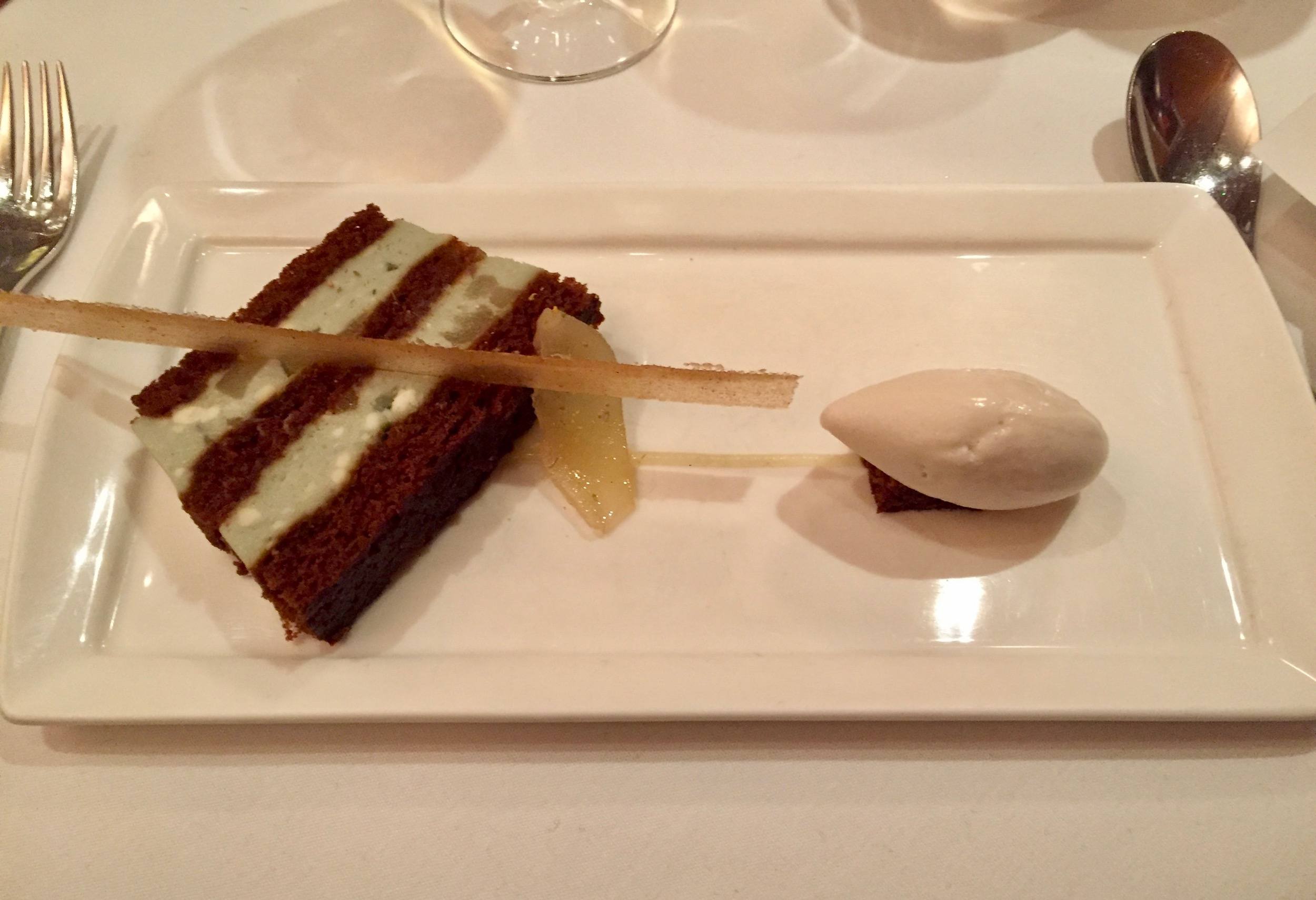 The main course followed. It was a tour de force for Burger again. He served a braised pork shank with broccoli rabe and garlic jus, but the surprise was his pommes aligot. This potato purée got its intense creaminess and richness with the addition of comté juraflore fort des Rousses from Fromagerie Arnaud. This genre of cow's milk cheese has the distinction of having the highest production of all French AOC cheeses, at 64,000 tons annually. The Arnaud family makes one of the best, as it has since it was founded in 1907. The wines were two more under the Légende label, a St. Émilion and a Pauillac.