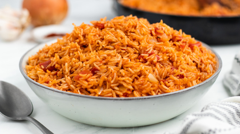 Brookes notes that one convenient thing about this Spanish rice recipe is that it only requires a single pot to prepare it in. She also says "I love that it only requires simple ingredients," although adds that if you want to get a bit fancier, you could use a shallot in place of the onion. You could also swap out the canned tomatoes for tomato sauce, if that is what you have on hand.