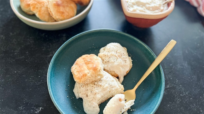 Johnson says "Country gravy is a breakfast comfort food staple that feels indulgent, but is fast and easy." This recipe comes together in under 20 minutes, so it's possible to serve this up on busy weekday mornings. Just think of the morning superhero you would be if you whipped this up on a Monday morning. Not sure what to serve this with? Let's be honest, it will be delicious on anything, but Johnson notes, "I like to serve this over biscuits, but [it] is also delicious over toast, scrambled eggs, or home fries." Keep reading to find out how to make this easy breakfast dish.