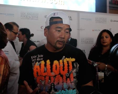 9:00 p.m. Tonight's all about video and The Daily Meal was a bit late to set up on the carpet because the tripod was in the trunk of the rental car that the valet misplaced for 20 minutes, but these little speedbumps happen and it didn't stop The Daily Meal from scoring interviews with Wolfgang Puck, Food & Wine's Dana Cowin, Kathy Griffin, Roy Choi (left), Jonathan Waxman, Floyd Cardoz, wine expert Anthony Giglio, and winners of the 2011 New York City Wine & Food Festival's Meatball Madness, Michael Chernow and Daniel Holzman.