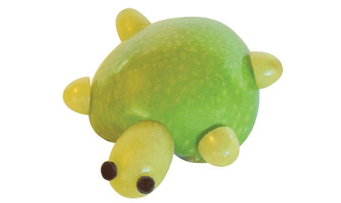 You can also make a turtle out of kiwis. Slice a kiwi into a circular mound for the body and cut more slices for the feet and head.