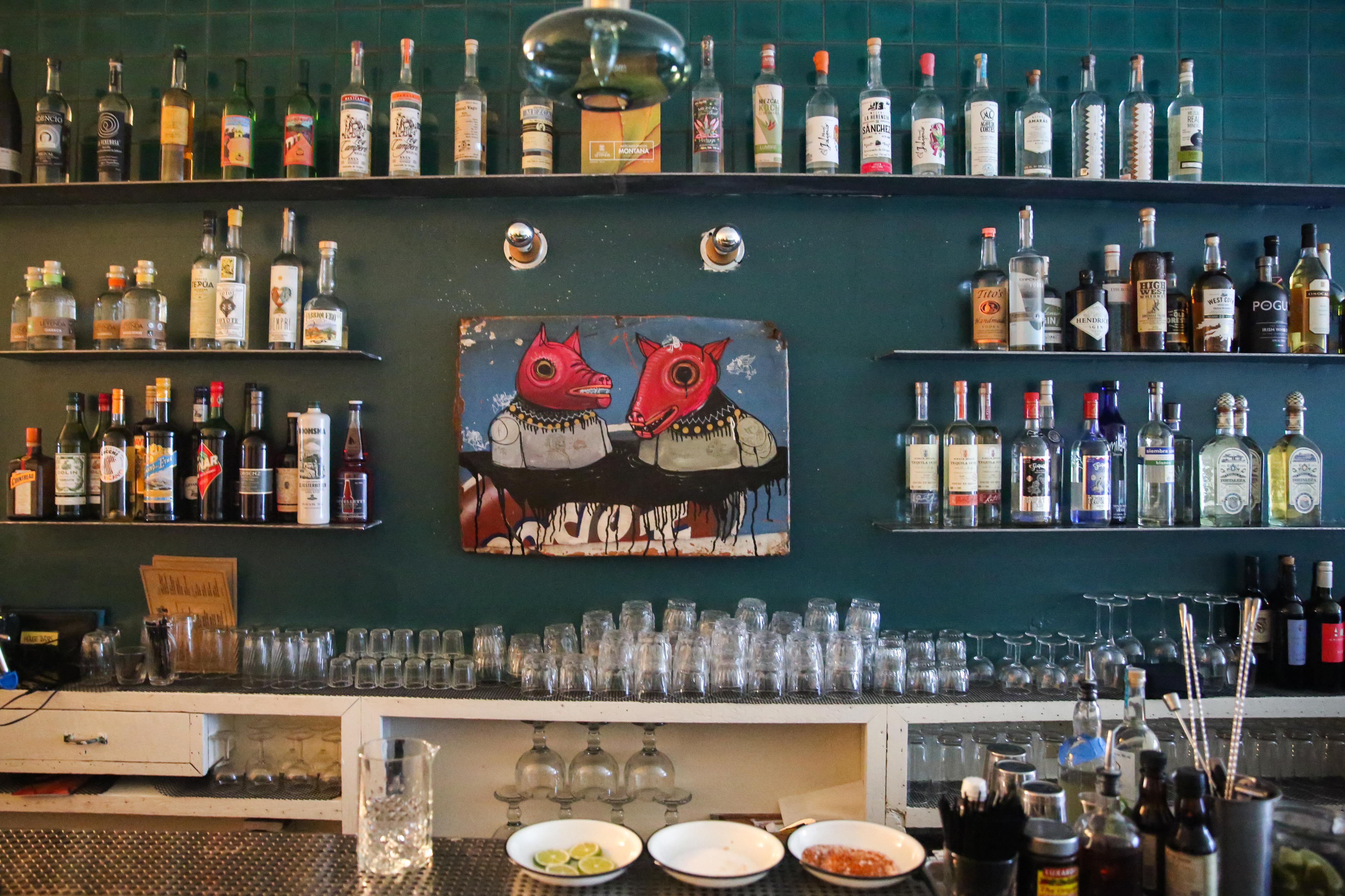 The bar menu features the requisite margaritas and cervezas preparadas, along with a selection of primarily Mexican beers and three curated boilermakers. House cocktails include the delicious Mojito de Matatlan, in which smoky Nuestra Soledad mezcal intertwines with mint liqueur, as well as the glass-aged El Broucklyn, made with Sotol Fabriquero, Dolin Dry, maraschino liqueur, and Angostura bitters.