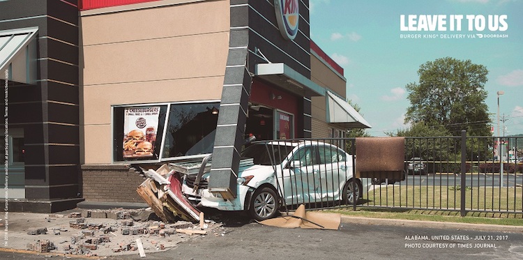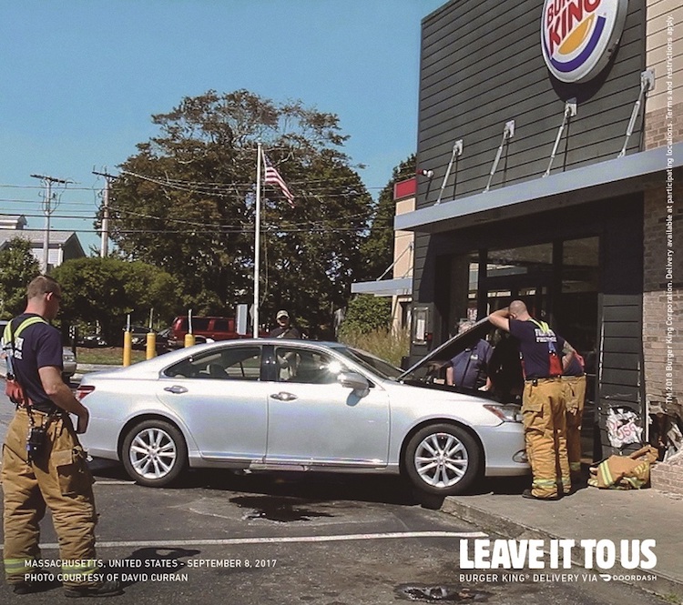 "Leave it to us" followed by "Burger King delivery via DoorDash" is emblazoned on all the photos. The advertisements ran to promote free Burger King DoorDash delivery from November 1 to November 4. Burger King is no stranger to provocative advertising. They've debuted ads written by artificial intelligence and even had commercials with super creepy clowns.