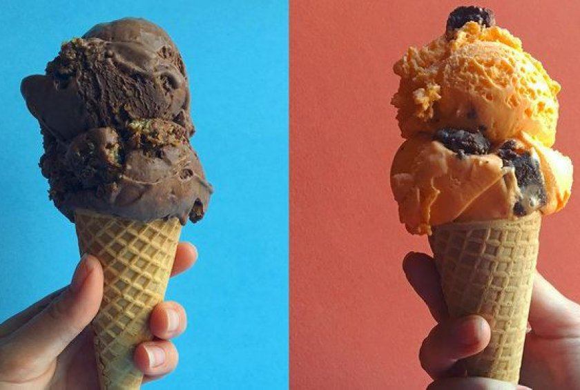 Ample Hills Creamery in Brooklyn celebrated the kickoff to election season with the debut of two new flavors inspired by our presidential candidates. Here's the cone lowdown: Madam President is a "chile-laced chocolate ice cream studded with Clinton's own recipe for chocolate chip cookies," and Make America Orange Again is a "creamy orange-marshmallow flavor," reminiscent of The Donald's complexion. You can purchase these limited-edition flavors by the scoop (ranging from $4 to $7) or pint ($9), or buy a four-pack online for $40. A portion of the proceeds from both flavors will go toward First Lady Michelle Obama's Let Girls Learn non-profit organization.