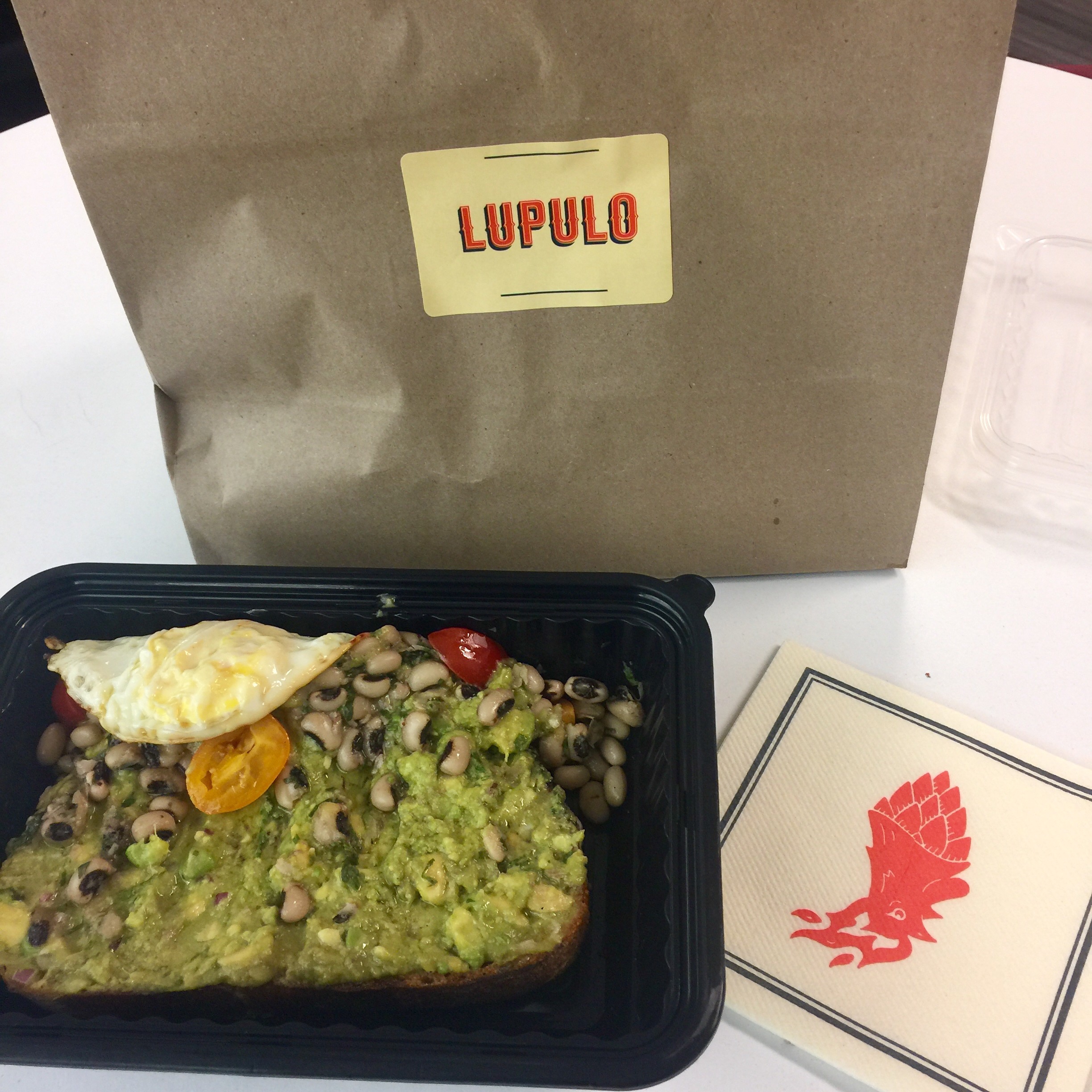 1 p.m. — So excited to head back to Lupolo, since it is only two blocks from our office, for their take on avocado toast. I get takeout and bring it back to the office to eat. The avocado is prepared with olive oil and coriander, served on wood-charred country bread, and topped with black-eyed peas, cherry tomatoes, and a fried egg. I find out that after 11 a.m. the dish actually costs $16, so word to the wise: Get there in the morning to snag this delicacy for $9.