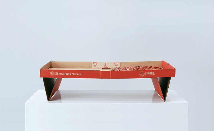 Few things are better than eating in bed, but at what cost? Sleeping in sheets compromised by crumbs is torturous. As part of a Father's Day promotion, Canada-based restaurant Boston Pizza has created the world's first pizza box that transforms into a self-supporting table for the ultimate Netflix binge on a night in. This ridiculous yet brilliant creation is made entirely out of cardboard and has legs that unfold and lock into place — so it won't burn your lap.