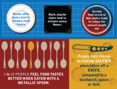 It's not surprising that what kinds of dishes our food is served on and what flatware we eat with affects how we perceive the food. We can tell this simply through our preference of eating from ceramic plates to paper ones. Moving on from this, you should know that the color of the plate will change how savory or sweet the food tastes — a cunning way to enhance the flavor in your dish.