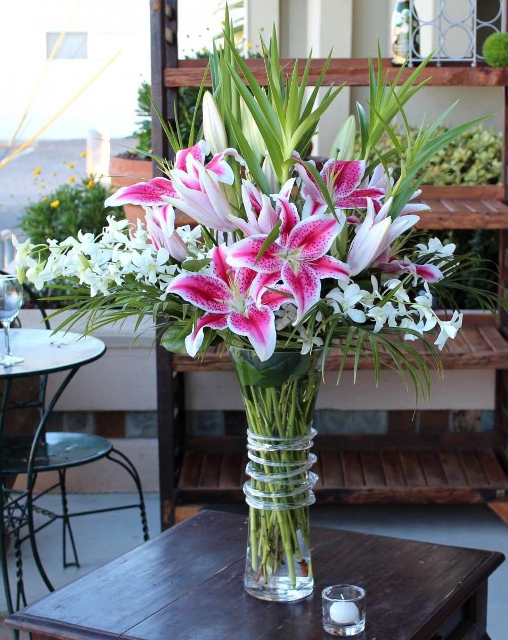 If you're looking for something statuesque, check out these stargazers and orchids in a tall vase. The pink lilies paired with the white orchids and tropical greenery will definitely dazzle your mom. Plus, the fragrance from this arrangement can't be beat.