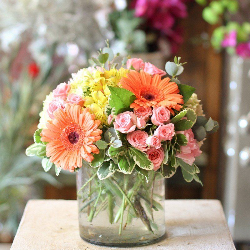 This arrangement from Main Floral is a perfect traditional Mother's Day arrangement featuring gerbera daisies, spray roses, carnations, and alstroemeria. The mixture of beautiful spring colors will certainly brighten Mom's day — you can't go wrong with a classic floral mix like this.