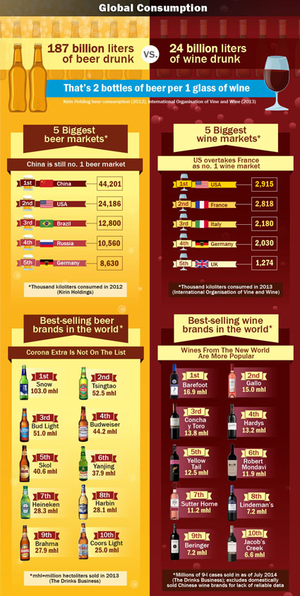 Want to be the smartest sipper at the next beer tasting or wine dinner—well, do we have the chart for you! Yes, be that person to announce at the event that China is still #1 in the world's beer market; we give you permission with this infographic by CompareCamp.com.