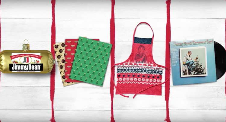 If you have a Jimmy Dean recipe photo to submit, there are other delicious gifts to choose from. There's a glass-blown holiday ornament that looks exactly like a roll of Jimmy Dean sausage, an apron featuring a photo of company founder and singer Dean, and a used copy of Dean's 1965 record album, "Jimmy Dean's Christmas Card."