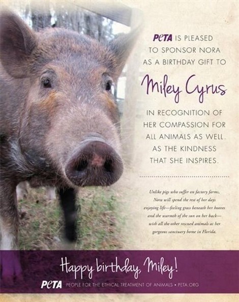 PETA Gifts Animal-Lover Miley Cyrus A Pig For Her 20th Birthday