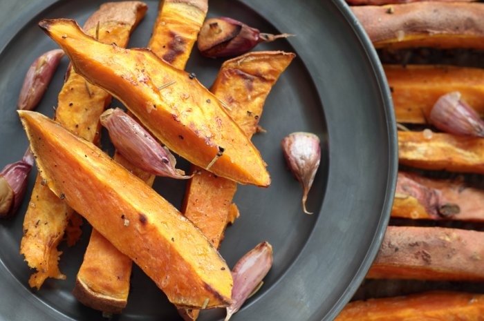 It is essential to have healthy alternatives to favorite junk foods (ahem, french fries) in your recipe repertoire. These sweet-salty baked sweet potato fries make a tasty, hearty side to pair with roast chicken or simple grilled steak for an easy weeknight dinner.Click here to see Simple Ingredients Made Simple. Click here to see 10 Vegetarian Recipes.