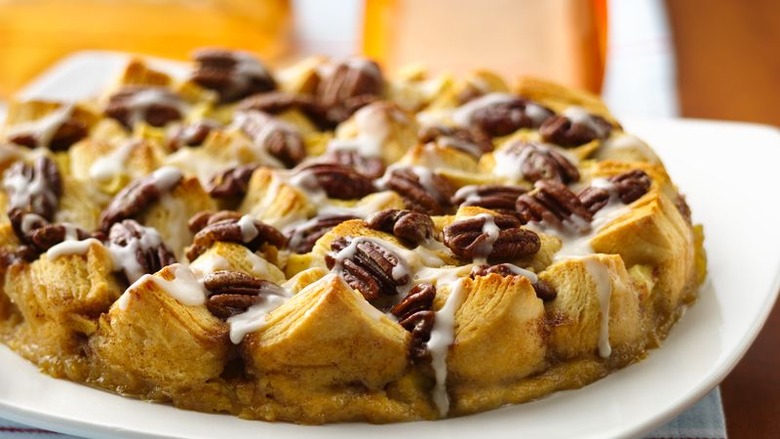 - In small bowl, mix remaining 1 tablespoon butter, the brown sugar, cinnamon, corn syrup, whiskey and egg; beat 2 to 3 minutes or until sugar is partially dissolved.