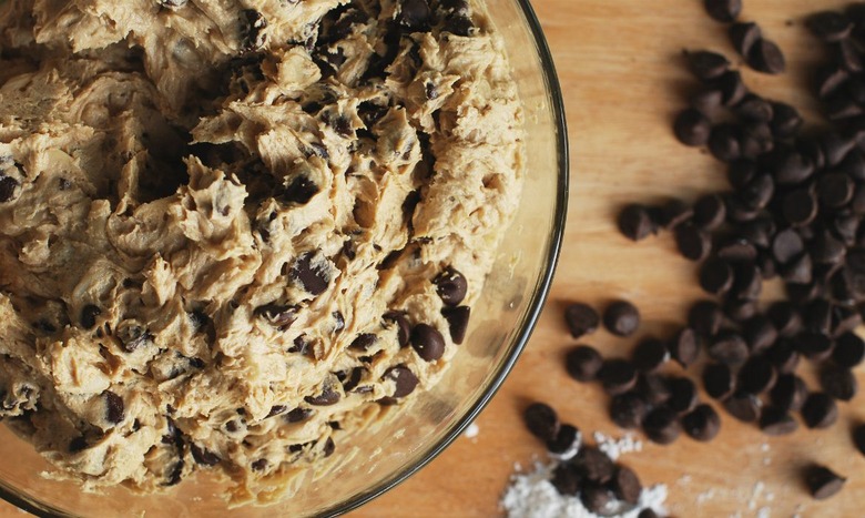 - Cream the butter and sugars together in a mixing bowl with an electric handheld or stand mixer until light and fluffy, about 3 minutes. Add the vanilla extract and almond milk; mix to combine. Combine the flour and salt, and add to form the dough. Fold in the chocolate chips and sprinkles. Chill in the refrigerator and enjoy.