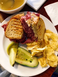I went for the soup and half a sandwich for lunch. It was scrumptious and large enough to serve two people. The Matzo Ball Soup was a full bowl with three matzo balls and the half sandwich was what most would consider a full sandwich. I enjoyed a classic rueben and when I could not make up my mind on the pickle, the server brought me both the half sour and pickled green tomato. Not to fear, it was all so good I devoured everything.