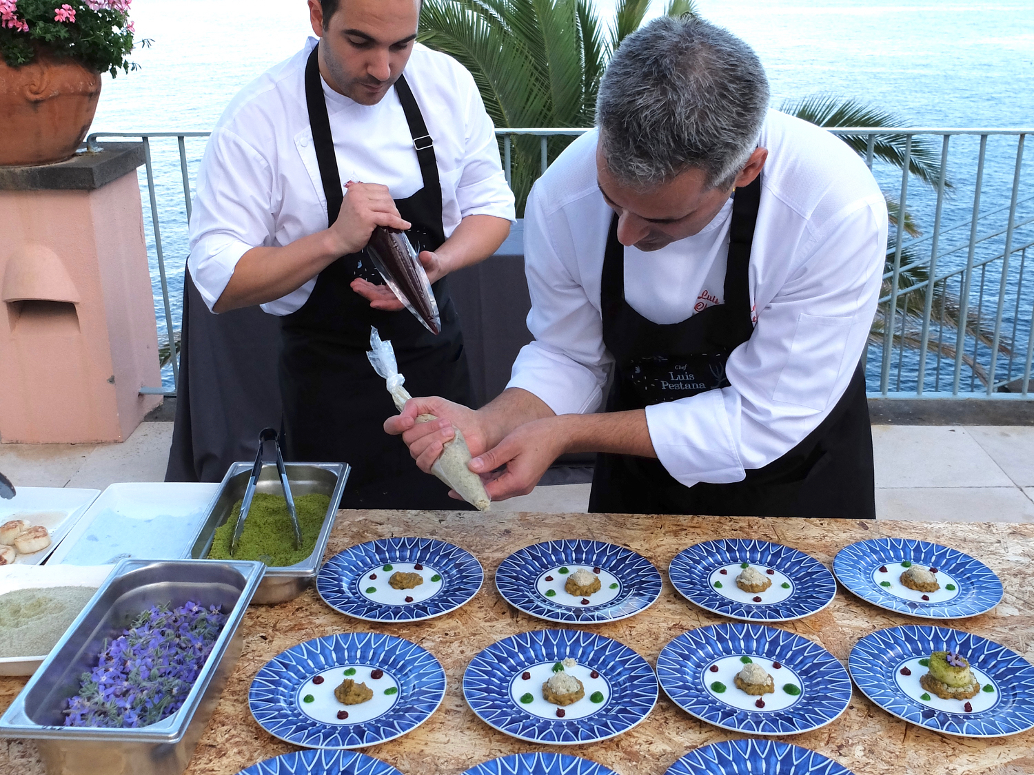 Young sommelier André Franco, of Porto's Yeatman, paired each dish with wines from Portuguese producer, Niepoort. Highlights included the Charme 2015, an elegant, earthy red from the Douro's Vale de Mendiz whose red fruit and soft tannins paired perfectly with Vitor Matos' roast pigeon and beet dish. Guests also discovered a unique aged white port, Porto Branco. The gorgeously golden sip burst with orange peel and fig notes—the ideal pairing for the chocolate and passion fruit dessert. While the chefs each prepared their own dishes—aided by their assistants and Reid's Palace cooks—there was convivial camaraderie in the kitchen as chefs shared recipes and techniques together.