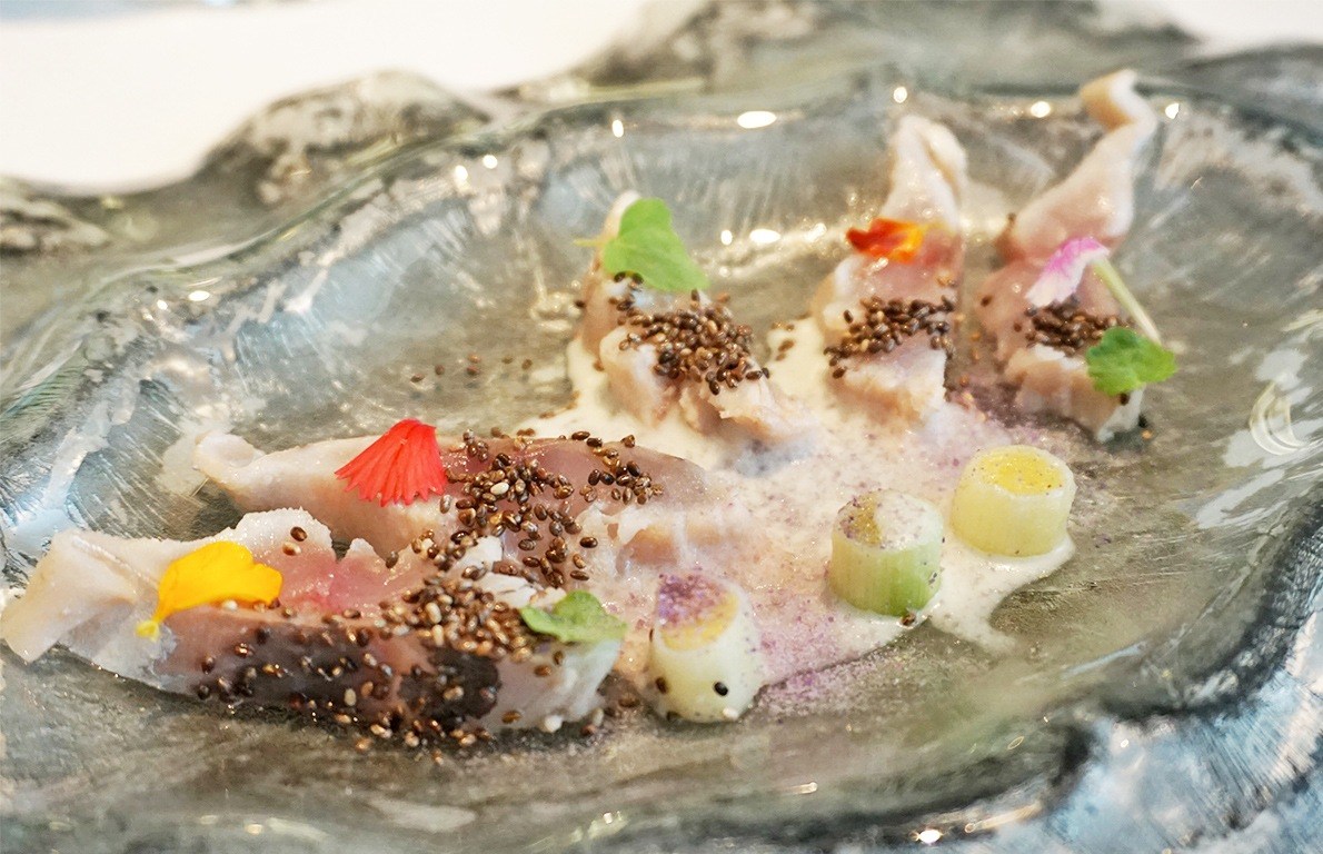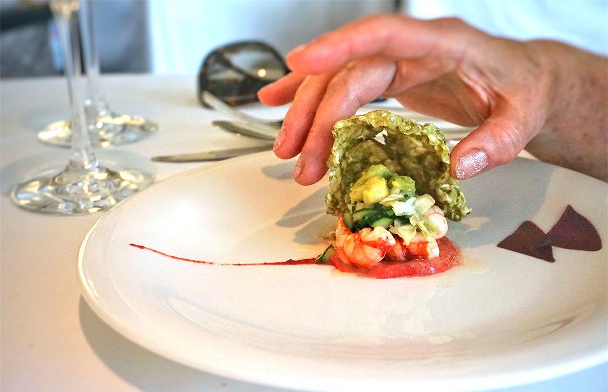 The first bites are moringa and prawn gyoza. Traditional Japanese gyoza are made with steamed dough (not unlike a dumpling) but Arzak's take sees a crispy outside to add a crunch.