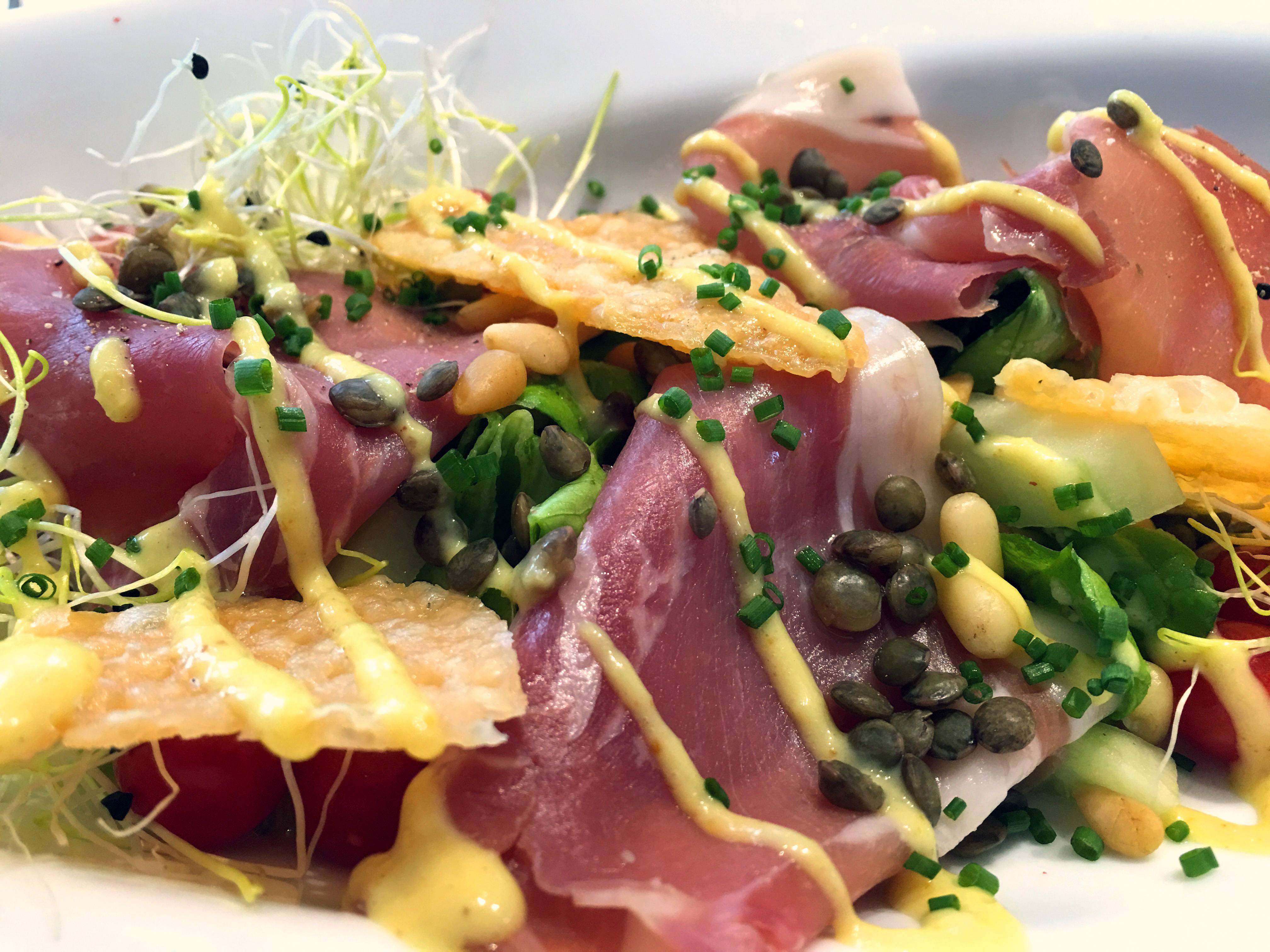 Back on board, chef Frank Schaart, as much of an artist as he is a chef, is preparing lunch for his guests. Today's offerings consist of Asian shrimp salad, avocado and mango compote, and poffertjes with honey. Dinner is more extravagant — light spicy carrot and coconut soup with salty peanuts and lobster meat, and filet of fish with purple potato and salty sea leaves with cognac and lobster sauce. These multi-course menus are meant to be savored slowly, accompanied by fine wines and good conversation.