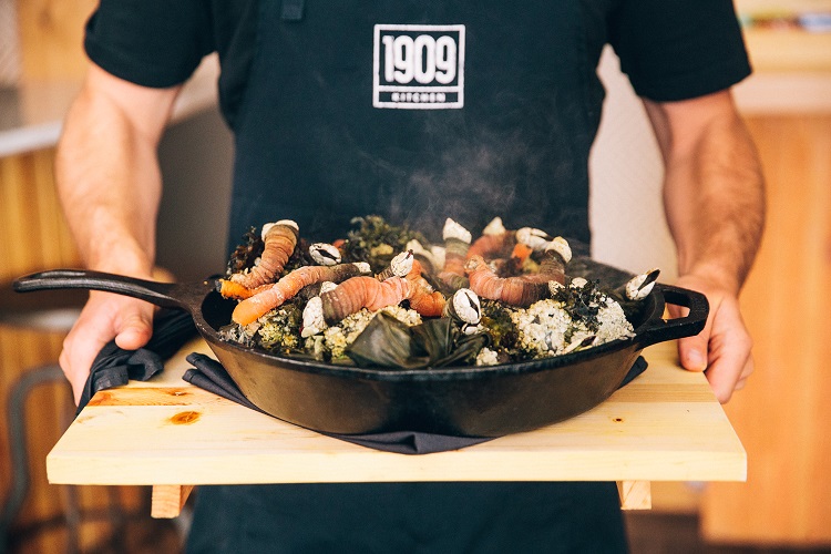 Tofino Resort & Marina's signature restaurant, 1909 Kitchen, offers ingredient-driven cuisine by Executive Chef Paul Moran. Chef Paul forages for many of the ingredients himself and uses produce sourced and foraged from Tofino's ocean, shoreline, and forests. Other than the special Italian Mugnaini wood-fired oven they imported from Italy, caught fish is one of the most popular items. The menu constantly changes and reflects local Tofino ingredients such as gooseneck barnacles, chanterelles and sea asparagus. 1909 Kitchen also offers a chef's menu where for an additional $50, the chef will not only personally cook every dish for you, but also customize a whole meal.