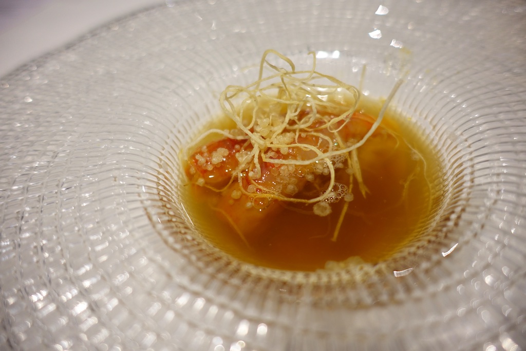 Chef Andreu Genestra is known for his resurrection of Mallorcan flavors and his ability to present the best flavors of his island home in a contemporary manner. A dish of local spot prawns, cooked gently in a parsnip soup was a warningly delicate dish, gentle in its luxuriously sweet flavors. A cleverly produced plate, it's a gracious nod to the bountiful flavors of the region, with a respectful treatment of the seafood resulting in a satisfying bite into the succulent prawns, hindered only by the disparity in the sizes of other elements on the plate. It's a wonderfully luxurious and calming dish, and an example of Genestra's artistry in portraying local flavors with elegance and discernment.