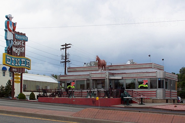 Shipped by rail from New Jersey in 1957, Davies' Chuck Wagon Diner in Lakewood, Colorado, is the last frontier of diners out West. With a horse perched atop its roof and a giant cowboy smiling at you from the road sign, you will definitely be roped into grabbing a bite.