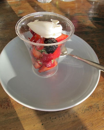 8. Fresh berries tossed with good balsamic vinegar, chopped basil, and a dollop of sweetened mascarpone.