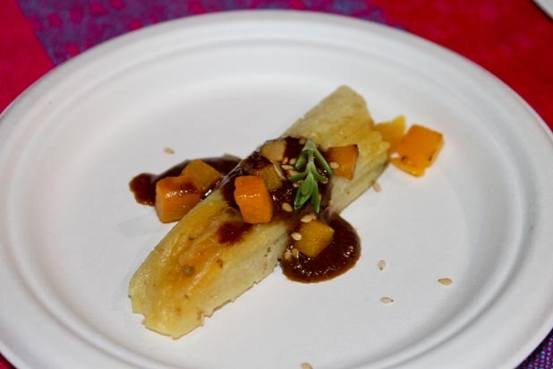 The pig train rolled on at this show-stopping beauty, which was quite possibly the most photographed centerpiece of the night. A whole pig was slow cooked by the folks behind this Lower East Side cult favorite, and the skin was some of the crunchiest we've had. No additional frills were needed.
