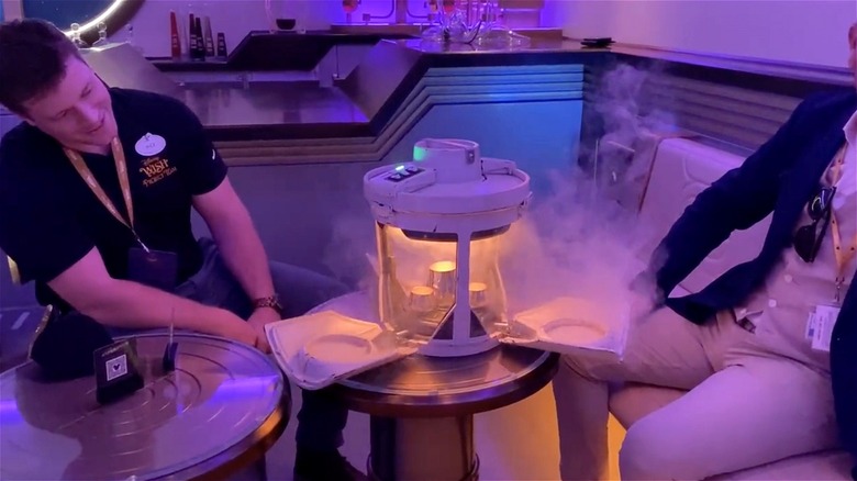 But that's not all you get when you order the Kaibur Crystal. According to Mahnken, the rare cocktail is served in expensive Christophle BeeBee silver-plated cups, which you get to keep. Scott Gustin, a writer and self-described Disney aficionado who also had a chance to order the drink, shared on Twitter, that he also received a "Star Wars" backpack, a bottle of sparkling wine from Skywalker Ranch, room decorations, and other gifts while on the cruise. (He also stated that "yuzu and kumquat" were elements of the cocktail, which Mahnken did not.)