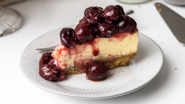 As recipe developer Jennine Rye describes her latest creation, "This cherry cheesecake is the perfect way to showcase delicious cherries, as the sweet, fresh cherry flavor pairs so beautifully with the creamy vanilla of the cheesecake." She also makes mention of cheesecake being "a wonderful all year round dessert option," and indeed, you can bake this at any time of year if you're using frozen cherries.