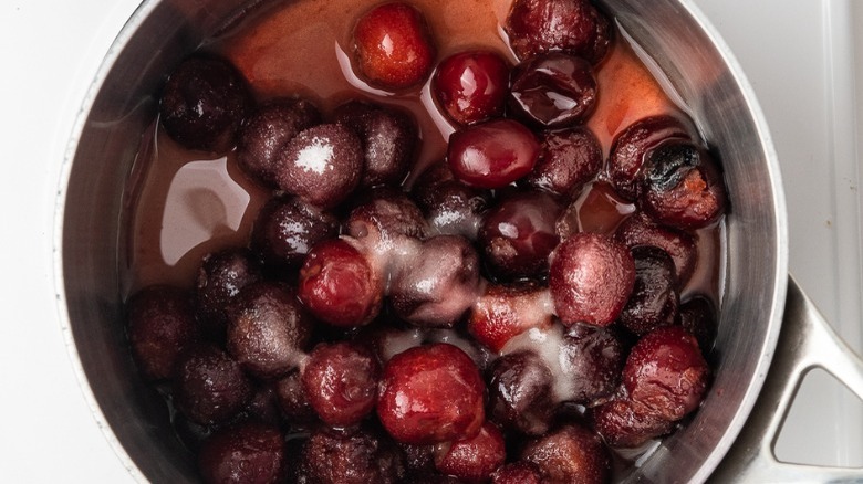- Stir the cornstarch paste into the cherries and simmer for 3-4 minutes, until thickened.