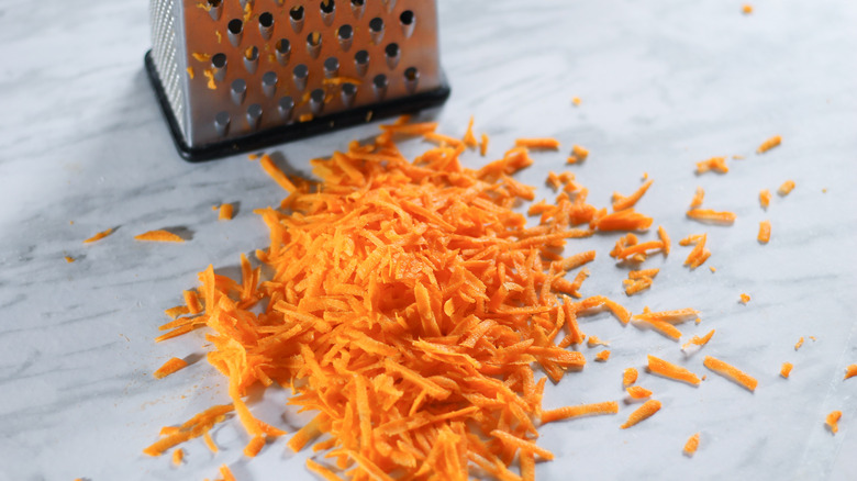 - Use a box grater to shred the carrot, then set it aside.