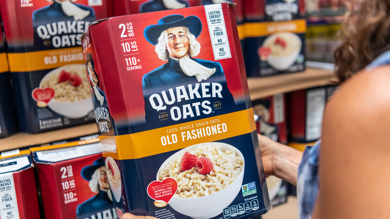 Everything about Quaker Oats rings wholesome on the surface. For one thing, there's the simple, classic design of its packaging: The Quaker Oats Company's relatively modest line of products fits neatly into three categories (old-fashioned oats, quick oats, and snacks). For another, there's also each product's clearly labeled ingredients and the nutritional benefits they carry. And, of course, there's the brand's rosy-cheeked spokesman: William Penn, who's been smiling proudly in all his apple-cheeked, countryman-hatted glory since 1877, per The Chicago Sun-Times.