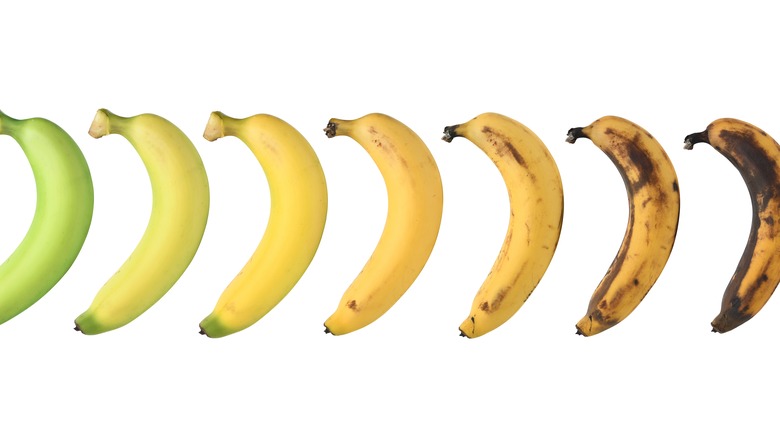 "It's just a phase" isn't only applicable to punky teenagers in coming-of-age films — it also applies to bananas. Much like avocados, the texture and taste of bananas constantly change before and throughout their entire shelf life. From the starkest of green hues to yellow-bodied bunches, the fruit can change quickly from one day to the next, especially if you use a hack to ripen bananas.