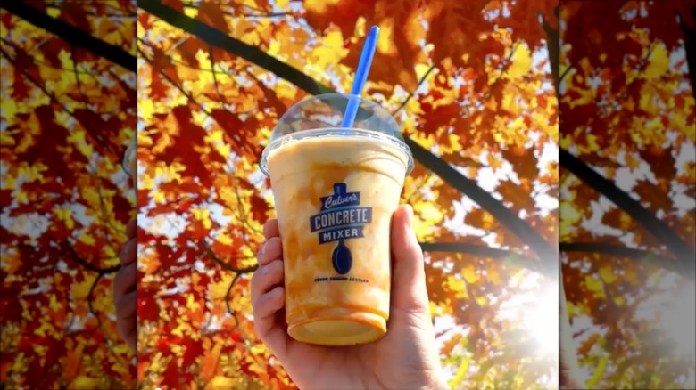 Pumpkin season is back in full swing, and nowadays, it seems like you can get something featuring the flavor at every restaurant you go to. You can enjoy Pumpkin Spice Lattes in every state, the Pumpkin Pie Blizzard at DQ, or make a pumpkin pancake recipe at home. Now, the Salted Caramel Pumpkin Concrete Mixer and Pumpkin Spice Shake are available at Culver's. That's right — the much-anticipated pumpkin custard products are back for the season (via QSR).