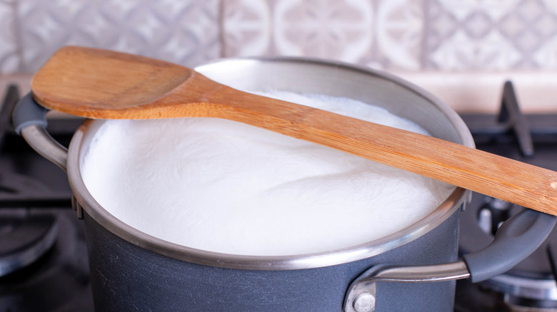 To make things worse, oatmeal is notoriously difficult to clean up once it dries on, so even if breakfasters are in a morning rush, they'll have to stop and scrub up the gloopy mess. Jamie Oliver says, "If it boils over and goes on the cooking range it's really hard to clean and it stinks the house out." He recommends using a high-sided pot and avoiding milk in the stove-top mixture. He also stirs his porridge while it's cooking to break up the bubbles.
