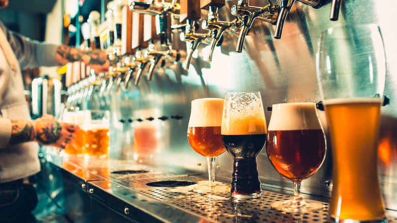 Keep in mind, the wrong glass won't ruin a good beer, but pouring a beer into a glass helps activate the carbonation that creates the pillowy, foamy head. Shape and width play an important role, too; a glass with a more narrow mouth (like a pilsner glass) helps to retain that head by reducing the amount of surface area where carbonation can be lost, says the Homebrewer's Association. Similarly, glasses that have a narrower, vase-like base (like a weizen glass) are best for hazy or unfiltered beers like the weizen itself, per Kegerator, allowing for sediments to settle at the bottom while still retaining aromas and controlling any excessive foaming at the head.