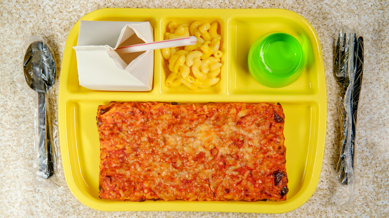 Take a trip down memory lane. You're in second grade, and you just opened your Sesame Street lunch box and it's your fave — PBJ, fruit, and a Minute Maid juice box. You look over at your friend, who bought his meal from the school cafeteria. Rectangle cheese pizza, apple sauce, jello, and ... milk?