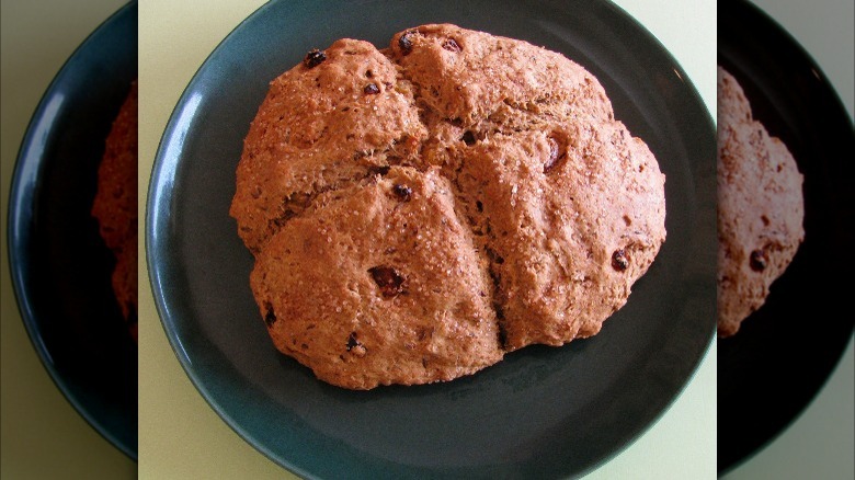 Another peculiar thing about soul cakes is that there isn't one specific recipe to follow. Per Learn Religions, the most basic recipe for soul cakes uses three ingredients; butter, sugar, and flour. Another basic soul cake recipe calls for premade pie crust, butter, honey, and dried fruit, while one soul cake recipe from Lavender & Lovage includes currants, egg yolks, milk, and mixed spice (similar to pumpkin pie spice) to the mix, and the dough is indented with a cross shape before baking. Lastly, a soul cake recipe from Outdoor Apothecary has raisins, black pepper, and turmeric in the dough for a little spice kick, and the raisins are arranged in a cross formation before baking. Whichever way you decide to enjoy them, soul cakes can be a deacdent treat for Halloween.