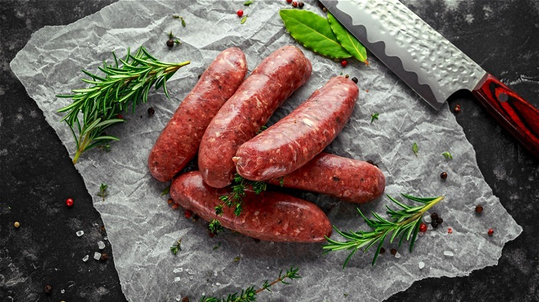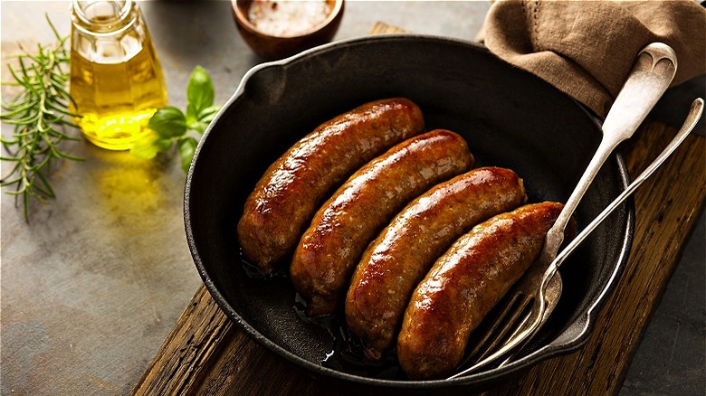 Besides Ray's money-saving tips regarding meat, in one segment on "The Rachael Ray Show" where she details the secret to her savory French toast, she also reveals her method of cooking the best sausages. In the episode (via YouTube), Ray uncovers her trick to perfectly crisp sausage is to pierce links with a fork and place them in a pan with one-eighth of an inch of water. Once the water has evaporated, she advises viewers to drizzle the sausages with olive oil and let them cook through and eventually crisp. Ray outlines the details of her tried and true method on her website. While the cook claims this is the best way to make sausage, others contest the recommendation to pierce fresh links with a fork before cooking.