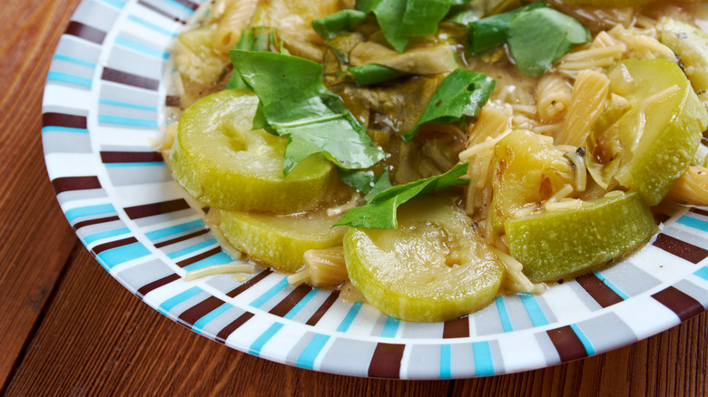 What if you're making zucchini noodles (a.k.a. zoodles)? Inspiralized offers that you should cook your noodles before adding your sauce to allow some of the zucchini's moisture to evaporate first. They also recommend cooking for a mere three to five minutes until they are just al dente, adding that you should drain them in a colander before adding your sauce. And, don't forget to keep the zoodles moving when you're cooking them, so they cook evenly. According to Real Simple Good, you can also use the microwave. Simply heat them for a minute. If they're not ready, keep adding 30-seconds until they're perfect.