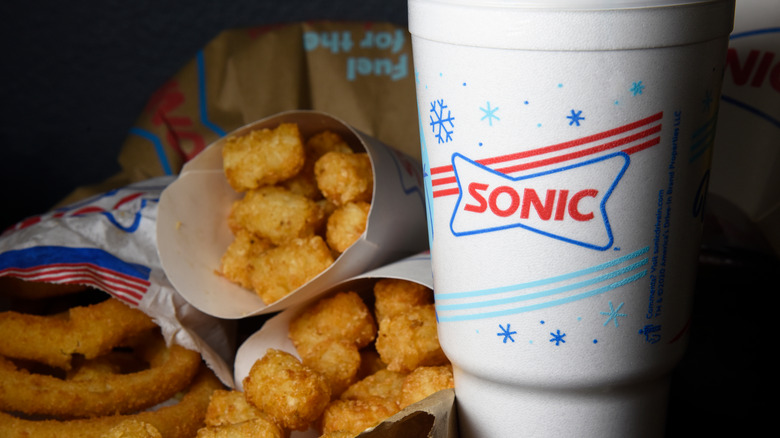 Sonic Drive-In's menu is extensive and varied, offering everything from plain burgers to footlong coney dogs to Fritos chili cheese wraps. Ice cream features heavily on the menu too, with shakes and sundaes, giving you the holy trinity of sugar, salt, and starch that we crave. The core menu surely has something for everyone, and in addition to that, Sonic often features limited-time items like various butter burgers and flavored tots, per Nation's Restaurant News.