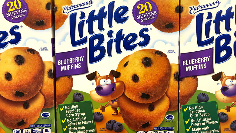 Little Bites, owned by the Entenmann's brand, are mini muffins, and more recently mini cookie treats that can be bought in packs, and enjoyed by anyone with a huge sweet tooth, and in need of a good snack. There are a lot of Little Bite snacks, however, from chocolate chip cookies to blueberry muffins. With so many snacks to choose from, it isn't easy to pick a favorite — especially when it comes to muffins. Fortunately for you, we've taken all of the Little Bites snacks, and ranked them from worst to best, so the next time you want some mini muffins or cookies, you'll know which Little Bites are the tastiest.