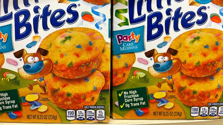 Up next, we have a Little Bites product that's the same flavor as the previous entry on this list, but in muffin form. The Party Cake Muffins are made up of the company's classic, golden, and sweet muffins, with some colorful sprinkles mixed in. With four muffins per pouch, these snacks attempt to make one feel as though they are consuming a flavorful celebration in every bite. While these muffins taste soft and sweet, and look amazing, however, there isn't really anything else going for them. They taste delicious — so long as you can stand the overly sugary taste that the muffins hold.