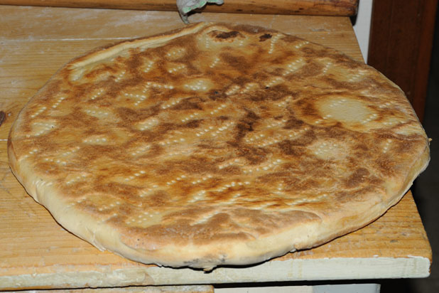 This Umbrian griddle-baked flatbread is a staple of the province of Perugia, and has been compared to some of history's first examples of unleavened bread (traditionally, torta sul testo was baked on earthenware). As if it couldn't get tastier, this authentic Italian flatbread gets stuffed with greens (like spinach or broccoli rabe), or is served plain with a side of Pecorino cheese or olives. Delizioso!